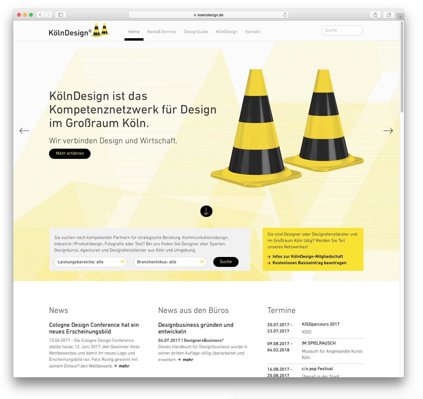 Grundlegendste Änderung ist, daß es jetzt nur noch ein Portal gibt: die bisherige DesignGuide-Plattform wurde komplett überarbeitet und in den eigentlichen KölnDesign-Auftritt integriert. Hier finden potenzielle Designauftraggeber kompetente Designer aller Sparten, Designbüros, Agenturen und Designdienstleister aus Köln und Umgebung.