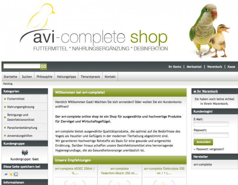 Onlineshop für avi-complete (Futtermittel und Nahrungsergäzung für Ziervögel und Witschaftsgeflügel).Frei nach dem Motto Man ist, was man frisst galt es dem Onlineshop einen auffallenden und witzigen ...Auftraggeber