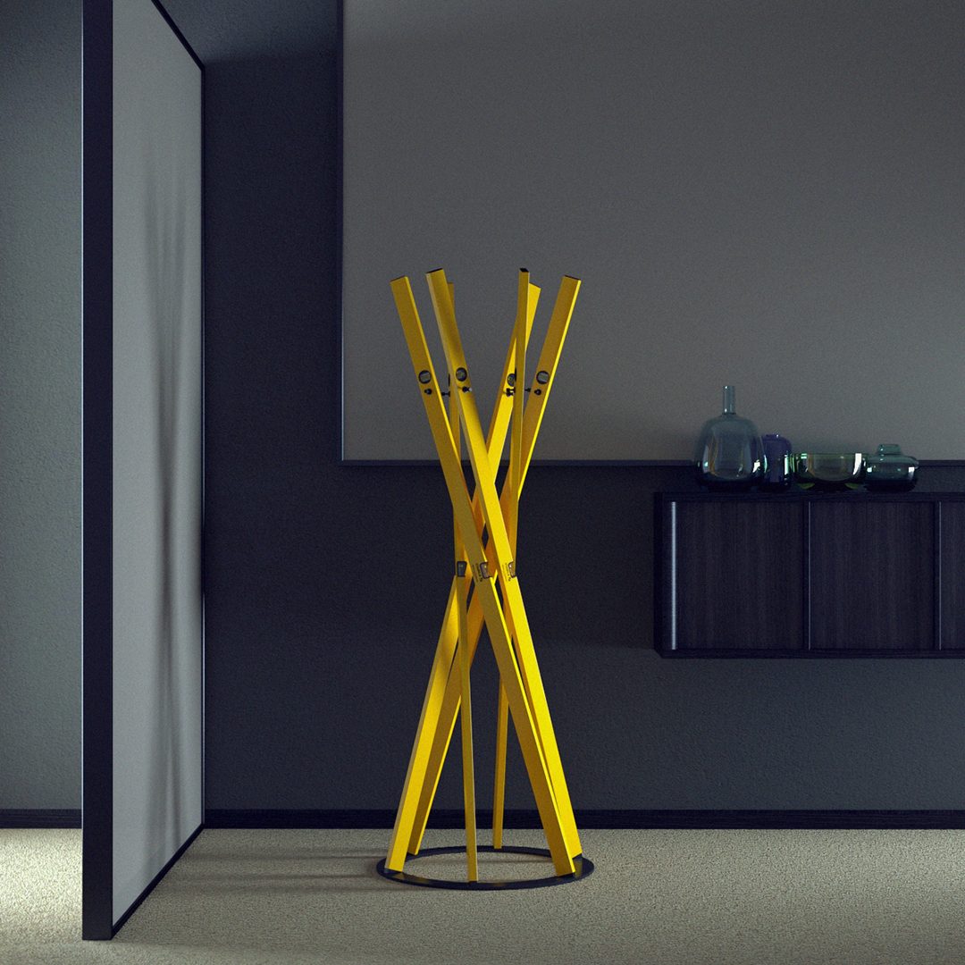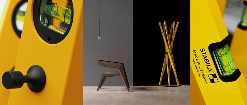 Sechs klassische Wasserwaagen von 180 cm Länge werden zu einem Garderobenständer der besonderen Art. So entsteht ein Möbelobjekt mit Skulptur-Charakter, das die Ästhetik des technischen Instruments pe ...Auftraggeber