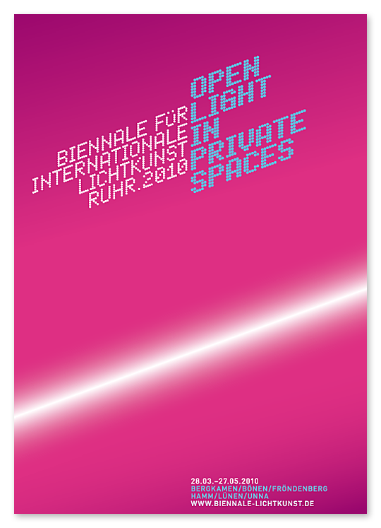 Open Light in Private Spaces lautet das Thema der ersten Biennale für Internationale Lichtkunst, die im Frühjahr 2009 in sechs Städten des Ruhrgebiets stattfindet. Wir haben für das Kunstereignis das ...Auftraggeber