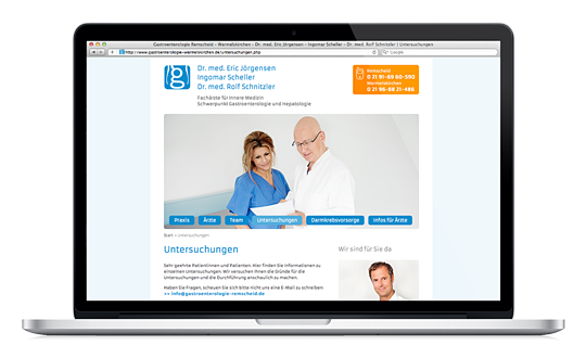 Die beiden Praxen für Gastroenterologie von Dr. Eric Jörgensen, Ingomar Scheller und Dr. Rolf Schnitzler in Wermelskirchen und Remscheid präsentieren sich mit einer gemeinsamen Website, für die wir da ...Auftraggeber