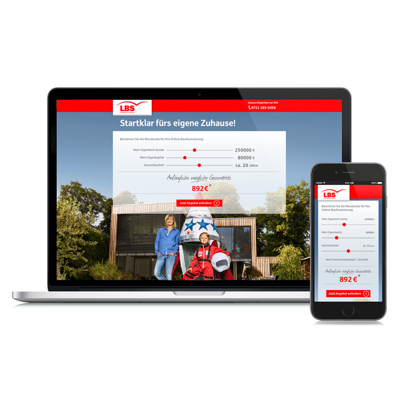 LBS Südwest: Online-Kampagne „Baufinanzierung“ mit responsiver Landingpage und Baufinanzierungsrechner