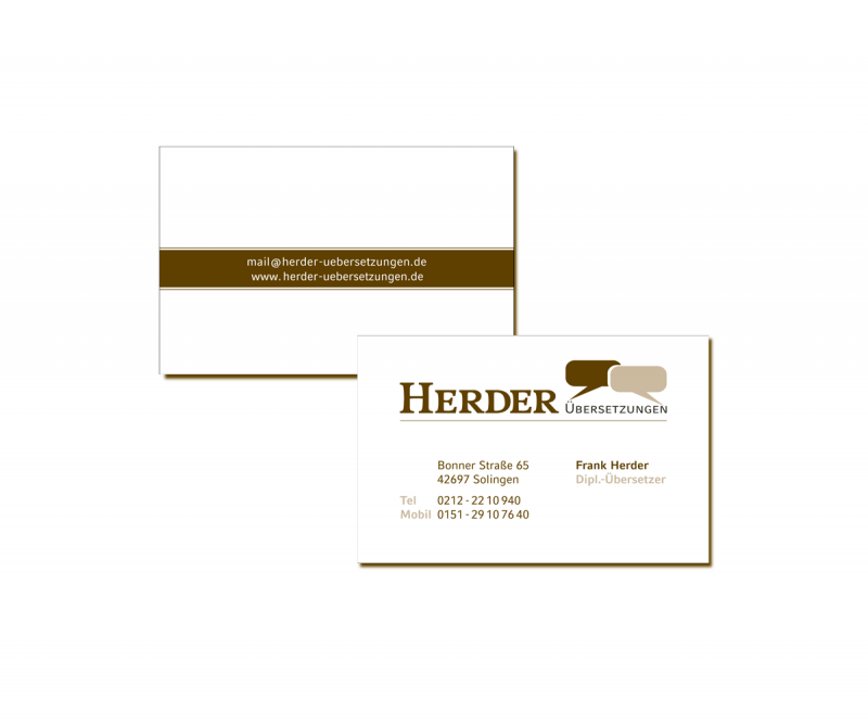 Entwicklung und Umsetzung des Logo für das Solinger Übersetzungsbüro, sowie die Gestaltung der Visitenkarte und Layout Vorlage für die Website.