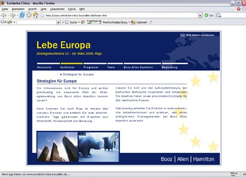 Microsite zur Information über die Strategie-konferenz "Lebe Europa" der internationalen Unternehmensberatung Booz Allen Hamilton.