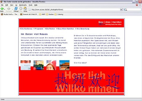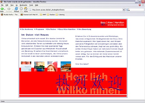 Microsite für die internationale Unternehmensberatung Booz Allen Hamilton, die über ein Strategie-Meeting in China informiert.