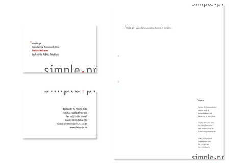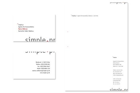 Für den Kunden simple.pr haben die Hoffnungsträger eine neues Corporate Design entwickelt. Sie entwarfen das Logo,Visitenkarten und Briefbogen, sowie einen Designguide für zukünftige Medien.