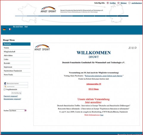 Relaunch der Webseite mit dem CMS Joomla 1.5x, Barrierefrei, Mehrsprachig, Mitgliederverwaltung, ImageGallerie,PDF, PowerpointIntegration uvm.