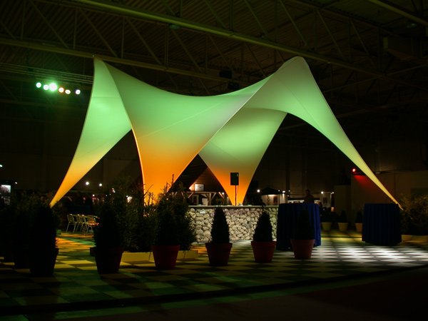 Entwicklung und Herstellung großflächiger Themen-Pavillons für die Gartenbau-Messen >Tuinidee< in s'Hertogenbosch, Goes und Zwolle (NL) 2006 und 2007Der Segel-Pavillon ist eine außergewöhnl ...Auftraggeber