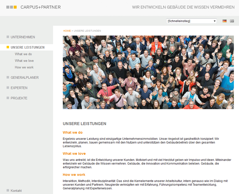 Was Unternehmen besonders macht, braucht oft viele Worte. Genau das wollten unsere Kunden von Carpus+Partner aber nicht und stellten uns vor die Aufgabe, ihre Unternehmensphilosophie kurz und knackig ...Auftraggeber