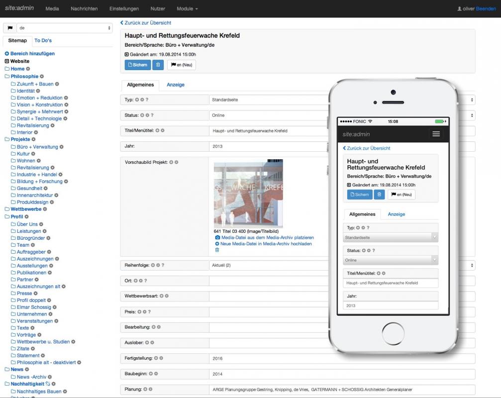 In diesen Fällen setzen wir auf unser bewährtes inhouse CMS-Framework site:admin, welches seit Jahren bei vielen Projekten erfolgreich im Einsatz ist und fortlaufend aktualisiert wird.