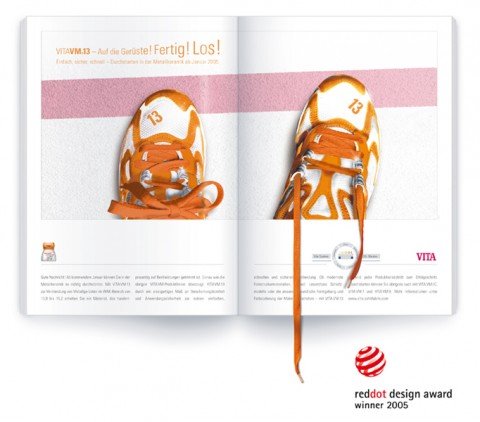 AUF DIE GERÜSTE! FERTIG! LOS! – AnzeigeKonzeption, Design, Fotografie und Text einer Einführungsanzeige zum Verkaufsstart von VITA VM 13. Die Verblendkeramik erlaubt die schnellere Verblendung von Brü ...Auftraggeber