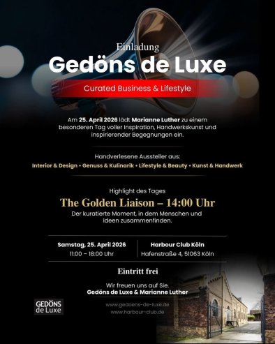 Am 25. April 2026 zelebrieren wir beim „Gedöns de Luxe“ nicht nur Ästhetik, sondern echte Synergien. Um 14:00 Uhr läuten wir unsere „Golden Liaison“ ein – der Moment, in dem wir das Spotlight auf Verbindungen richten, die weit über den Tag hinausreichen.