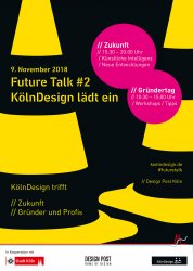 - Der zweite Future Talk mit Symposium und Gründertag findet am 9. November 2018 von 10.30 bis 20.30 Uhr in der Design Post Köln statt. mehr