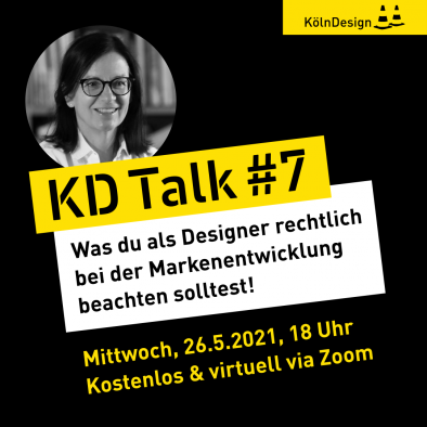 Am 26. Mai laden wir zum kostenlosen, virtuellen KD Talk #7 zum Thema "Was du als Designer rechtlich bei der Markenentwicklung beachten solltest!“ ein.